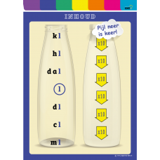 Inhoud poster Metriek in stapjes. Van kiloliter naar milliliter. Pijl neer is keer. Elke st..
