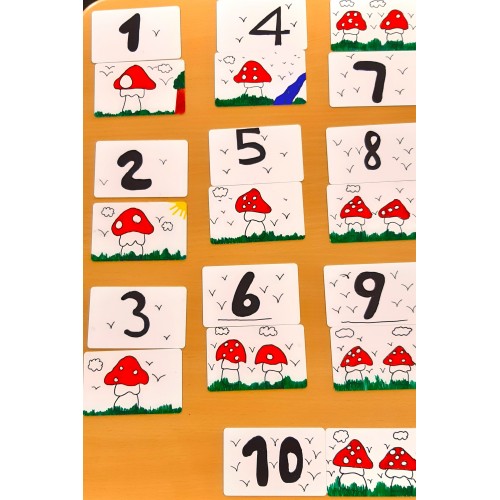 - 2 dezelfde zoeken : paddestoel met 9 stippen (2x) of (2x) een vierkant tekenen.
